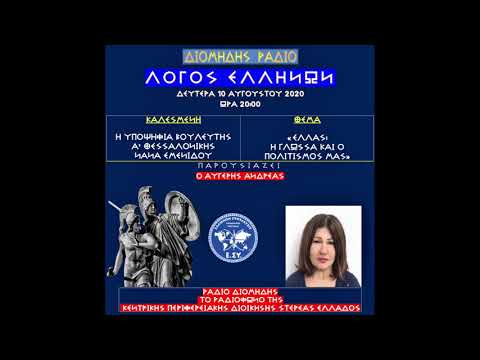 ΣΤΗΝ ΕΚΠΟΜΠΗ ΛΟΓΟΣ ΕΛΛΗΝΩΝ ΣΤΟ ΔΙΟΜΗΔΗΣ ΡΑΔΙΟ Η ΥΠ.ΒΟΥΛΕΥΤΗΣ Α' ΘΕΣΣΑΛΟΝΙΚΗΣ ΝΑΝΑ ΕΜΕΝΙΔΟΥ ΠΑΡΑΘΕΤΕΙ ΑΠΟΦΘΕΓΜΑΤΑ ΞΕΝΩΝ ΠΟΙΗΤΩΝ, ΓΛΩΣΣΟΛΟΓΩΝ ΚΑΙ ΕΠΙΣΤΗΜΟΝΩΝ ΠΟΥ ΑΦΟΡΟΥΝ ΤΗΝ ΕΛΛΗΝΙΚΗ ΓΛΩΣΣΑ ΚΑΙ ΕΛΛΗΝΙΚΟ ΠΟΛΙΤΙΣΜΟ ΑΠΟΤΥΠΩΝΟΝΤΑΣ ΤΗΝ ΤΕΡΑΣΤΙΑ ΣΗΜΑΣΙΑ ΤΩΝ ΟΣΩΝ ΠΑΡΕΔΩΣΑΝ ΣΤΟΝ ΠΛΑΝΗΤΗ ΑΥΤΟ ΟΙ ΕΛΛΗΝΕΣ ΑΝΘΡΩΠΟΙ 10-08-2020....