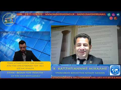 Ο ΥΠΟΨΗΦΙΟΣ ΒΟΥΛΕΥΤΗΣ ΜΕ ΤΗΝ ΕΛΛΗΝΩΝ ΣΥΝΕΛΕΥΣΙΣ ΣΤΟΝ ΝΟΜΟ ΧΑΝΙΩΝ ΜΙΧΑΛΗΣ ΧΑΤΖΗΓΙΑΝΝΗΣ ΚΑΛΕΣΜΕΝΟΣ ΣΤΗΝ ΕΚΠΟΜΠΗ ΤΟΥ ΡΑΔΙΟ ΔΙΑΦΩΝΩ "Η ΦΩΝΗ ΤΟΥ ΠΟΛΙΤΗ" ΜΕ ΤΟΝ ΝΙΚΟ ΦΡΟΥΔΑΡΑΚΗ, ΜΑΣ ΑΝΑΛΥΕΙ ΜΕ ΟΛΑ ΤΑ ΑΠΑΡΑΙΤΗΤΑ ΣΤΟΙΧΕΙΑ ΚΑΙ ΑΠΟΔΕΙΞΕΙΣ ΓΙΑ ΤΟ ΠΟΙΟΙ ΔΥΝΑΣΤΕΥΟΥΝ ΤΗΝ ΕΛΛΑΔΑ ΑΠΟ ΤΗΝ ΑΠΕΛΕΥΘΕΡΩΣΗ ΤΟΥ 1821 ΕΩΣ ΚΑΙ ΣΗΜΕΡΑ.ΤΙ ΕΧΟΥΝ ΥΠΟΓΡΑΨΕΙ ΟΙ ΚΥΒΕΡΝΗΣΕΙΣ ΟΛΗΣ ΑΥΤΗΣ ΤΗΣ ΠΕΡΙΟΔΟΥ, ΠΩΣ ΕΧΟΥΝ ΕΚΧΩΡΗΣΕΙ ΤΗΝ ΕΘΝΙΚΗ ΜΑΣ ΚΥΡΙΑΡΧΙΑ ΚΑΙ ΠΩΣ ΜΕΣΑ ΑΠΟ ΤΗΝ ΕΝΩΣΗ ΜΑΣ ΜΠΟΡΟΥΜΕ ΝΑ ΔΙΕΚΔΙΚΗΣΟΥΜΕ ΞΑΝΑ ΠΙΣΩ ΤΑ ΔΙΚΑΙΑ ΚΑΙ ΤΑ ΔΙΚΑ ΜΑΣ. 07-01-2021 ΜΙΧΑΗΛ ΧΑΤΖΗΓΙΑΝΝΗΣ ΥΠΟΨΗΦΙΟΣ ΒΟΥΛΕΥΤΗΣ Ε.ΣΥ. ΕΛΛΗΝΩΝ ΣΥΝΕΛΕΥΣΙΣ Ν. ΧΑΝΙΩΝ https://michaelhatzigiannisesy.blogsp... ΤΗΛΕΦΩΝΟ: +30 2821060494 ΚΙΝΗΤΟ: +30 6934198919 E-mail: michael.hatzigiannis@gmail.com Ε.ΣΥ. ΕΛΛΗΝΩΝ ΣΥΝΕΛΕΥΣΙΣ ΚΙΣΣΑΜΟΥ ΠΛΑΤΑΝΟΣ ΚΙΣΣΑΜΟΥ ΧΑΝΙΩΝ (ΕΝΑΝΤΙ ΑΓΡ. ΣΥΝ. ΠΛΑΤΑΝΟΥ) 📞6947150358 – 6945027066 📧 e.sy.kissamou@gmail.com